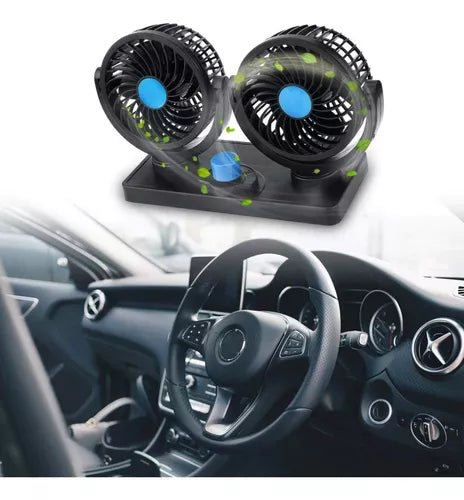 Ayuda a aliviar el calor en tu automóvil con este espectacular ventilador doble ideal para esos días calurosos. Tanto si tu auto tiene aire acondicionado o no puedes usar este ventilador que posee dos velocidades y oscilamiento manual en 360 grados. Lo podrás ubicar en cualquier parte de tu auto ya que posee una cómoda base para usar en el tablero como en otros sectores. El ventilador funciona a 12V /24V por lo que podrás alimentar con el puerto de encendedor sin mayores conexiones.